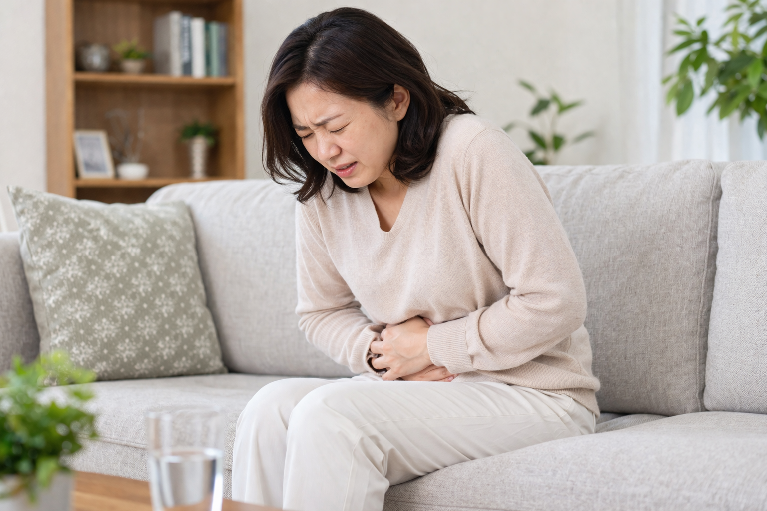 복부 팽만감은 매우 흔한 증상이다. 배가 더부룩하고 팽창된 느낌이 지속되며, 가스가 차면서 불편함이 커진다. 옷이 꽉 끼는 느낌이 들 정도로 불쾌감이 심해질 수 있다. 복통도 동반될 수 있다. 장이 제대로 움직이지 않으면서 내부 압력이 높아지고, 이로 인해 쥐어짜는 듯한 통증이나 묵직한 통증이 나타난다.