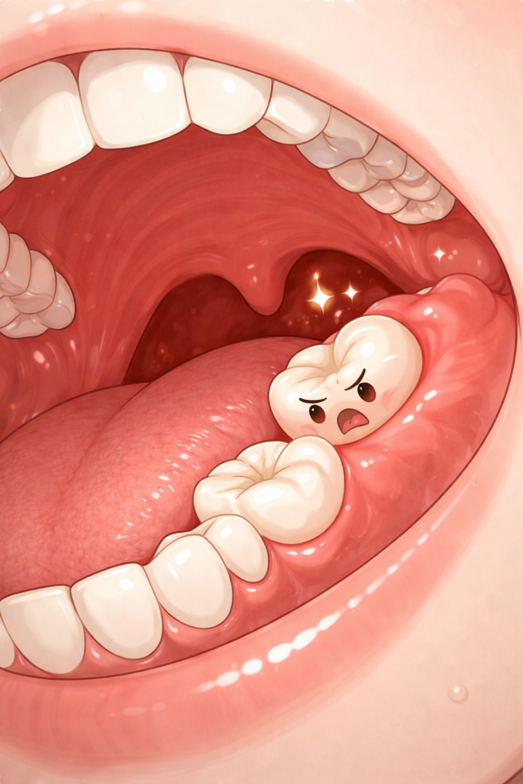 사랑니 통증의 가장 흔한 원인은 잇몸 염증이다. 사랑니는 입 안 가장 안쪽에 위치해 칫솔이 잘 닿지 않기 때문에 음식물이 쉽게 끼고, 그로 인해 세균이 번식하기 쉬운 환경이 만들어진다. 특히 사랑니가 완전히 나오지 않고 잇몸에 일부 덮여 있는 경우, 그 틈 사이에 음식물이 쌓이면서 염증이 더 쉽게 발생한다.
